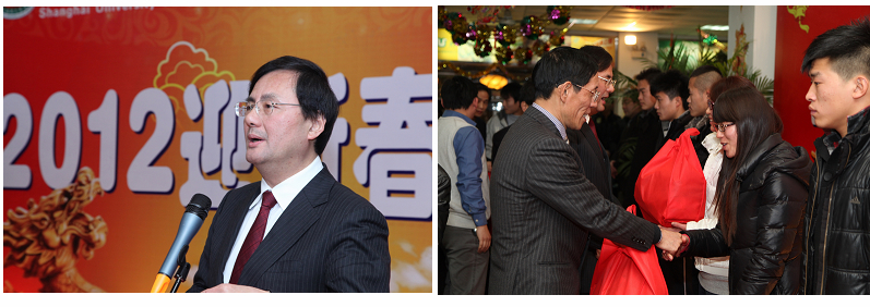 本网讯1月16日晚,我院师生欢聚一堂,在第二餐厅二楼隆重举行“上海体育学院2012年迎新春年夜饭”活动,共同迎接农历春节的到来。市教卫党委书记李宣海、秘书长谢一龙、副秘书长汪歙萍莅临我院,与师生一起迎接传统佳节的到来。院党委书记戴健,院长章建成,党委副书记、纪委书记庄起民,党委副书记杨培刚,党委副书记、副院长陈晓峰,副院长陈佩杰、平杰、赵光圣,各相关职能部门负责人以及各系(院)党政负责人、辅导员与近200名留校学生欢聚一堂,共进年夜饭。活动由学生工作部部长游林生主持。
