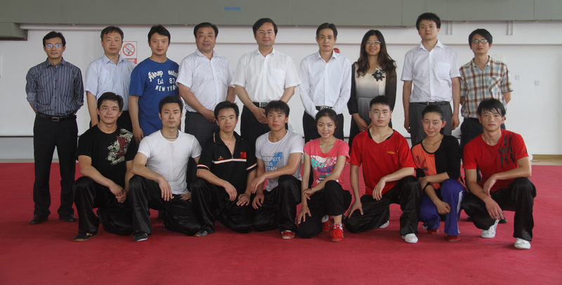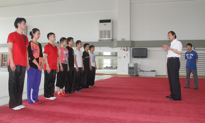 本网讯6月14日下午,党委书记戴健、党委副书记、副院长陈晓峰到训练馆亲切慰问武术学院参加韩国丽水世博会演出的师生。