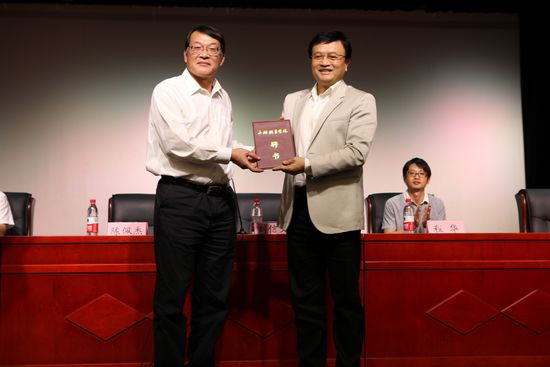 本网讯9月25日下午,我国著名演员、北京时代电影有限公司董事长、第七届大众电影百花奖最佳男演员刘信义受聘我院客座教授,副院长陈佩杰教授向刘信义颁发了客座教授聘书。聘任仪式上,武术院院长戴国斌教授介绍了武术表演专业的创办历程及未来发展规划。