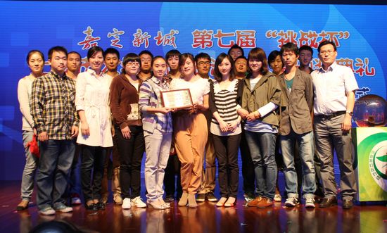 本网讯 10月12日下午,“嘉定新城杯”第七届“挑战杯”上海市大学生创业计划大赛颁奖典礼暨“创新,我们在行动”主题宣讲活动启动仪式在上海交通大学医学院举行。从仪式上传来喜讯,我院魏光等同学的《上海清晨体育营销有限公司》获银奖;《聚嗨手机应用》《上海融华体育文化传播有限公司》、《上海尚体武苑实业有限公司》分获铜奖,我院获“优秀组织奖”。