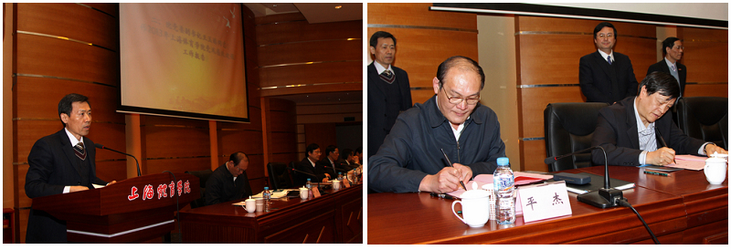 根据上海市政府关于2013年全市重大建设工程组织实施要求,为扎实推进学校重点领域、重要岗位及关键环节惩治和预防腐败体系建设,会上举行了中国乒乓球学院基建工程创双优签约仪式,副院长平杰介绍了介绍建设项目基本情况以及创建“工程优质、干部优秀”活动组织实施办法和领导小组名单,并代表学院与杨浦区检察院副检察长褚亮签约。褚亮副检察长向我院赠送了工程建设领域职务犯罪警示与预防教育丛书。