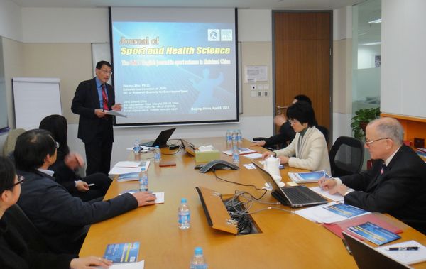 本网讯近日,陈佩杰副院长率领《运动与健康科学》(英文版)编辑部一行4人赴北京出席SCI收录期刊预评估答辩会,向美国汤森路透科技集团副总裁兼编辑发展部资深总监James Testa先生介绍办刊情况。我院知名校友、客座教授、美国伊利诺伊大学终身教授朱为模博士作为《运动与健康科学》(英文版)杂志国际编委代表,专程参会。汤森路透中国区业务总经理郭利和大学市场业务总监王利等也出席了答辩会。