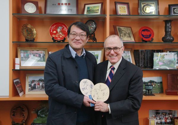 陈佩杰介绍了杂志概况和办刊宗旨。朱为模教授代表杂志编委会和编辑部进行陈述,全面介绍了《运动与健康科学》(英文版)杂志的创办背景、编委会组成、刊物特色、运营现状以及发展目标等情况。James Testa先生对“中国唯一一本英文版体育学术期刊”表现出浓厚的兴趣,充分肯定了《运动与健康科学》(英文版)的学科特色和学术质量,并表示会持续关注评估进展。双方还就体育学科热点问题、如何迅速提高新刊质量等话题展开热烈讨论,并互换礼物,合影留念。