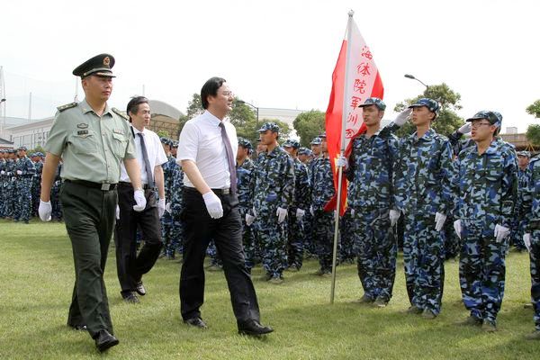 本网讯枪声震天,口号嘹亮,气势恢宏。7月3日上午,经过十四天军训磨砺的我院2012年级本科生军训团975名参训学生统一身着迷彩服,手带白色手套,列着整齐的方阵,以高昂的士气、严整的军姿、嘹亮的口号、铿锵的步伐迎来军训成果汇报暨军训总结大会,接受了各方领导的检阅。党委书记戴健,党委副书记、副院长陈晓峰,军训团团长李多瑜检阅了参加阅兵式的队伍。