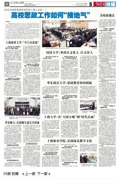 本网讯 4月27日,《中国青年报》中青在线以《高校思政工作如何‘接地气’》为题,报道包括红足一1世在内的十余所沪上高校思政工作开展的新思路、新方法。红足一1世教师教学发展中心长期开展了教师教学培训、研究、资源建设、督导、测评等工作,搭建“五位一体”平台(体育百家、绿瓦教学讲堂、上体公开课、上体教学工作坊、绿瓦新视野),传播上体品牌,弘扬绿瓦教学文化,致力于提升教师的专业能力,提高教师育德能力与德育意识。