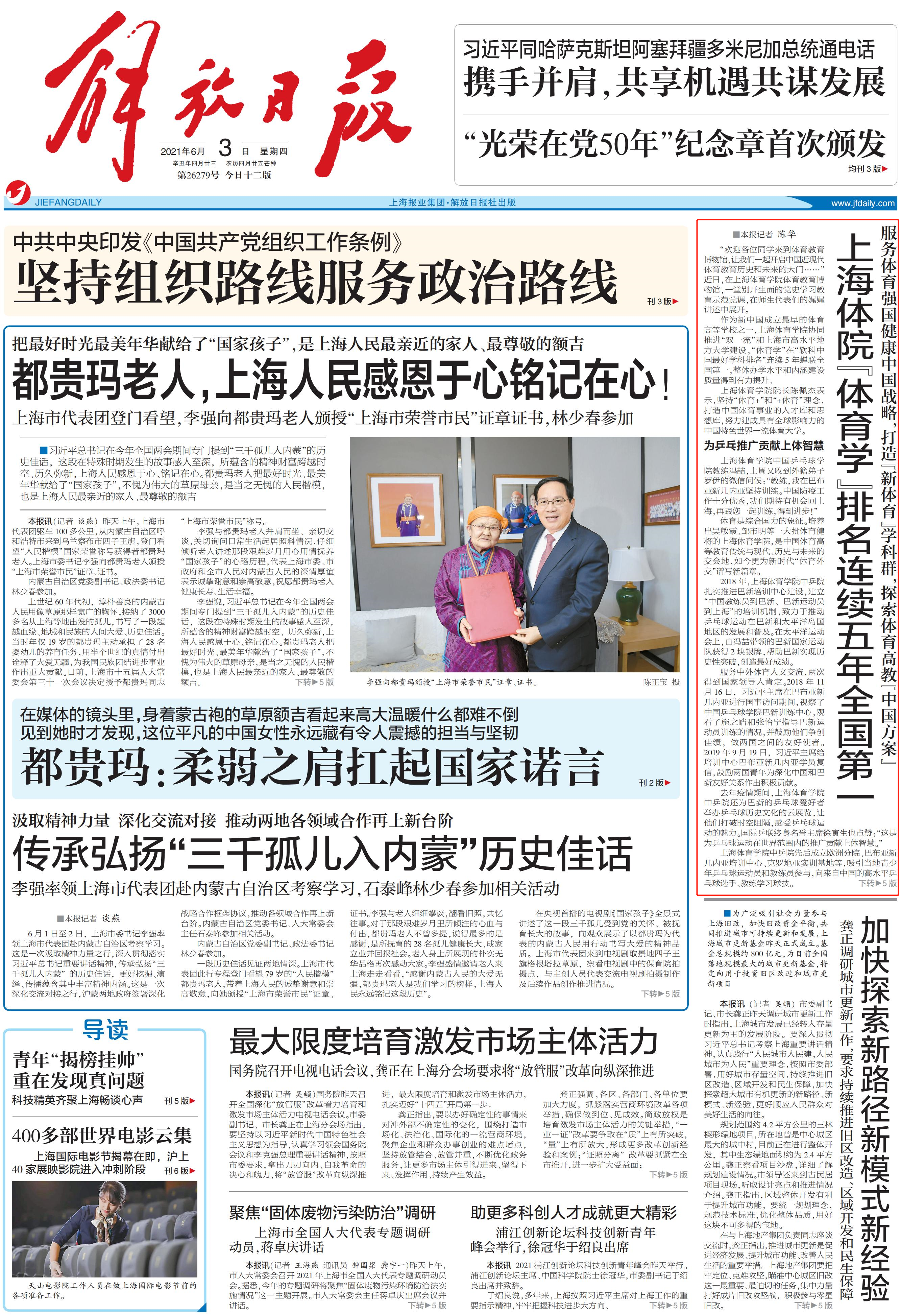 作为新中国成立最早的体育高等学校之一,上海体育学院协同推进“双一流”和上海市高水平地方大学建设,“体育学”在“软科中国最好学科排名”连续5年蝉联全国第一,整体办学水平和内涵建设质量得到有力提升。